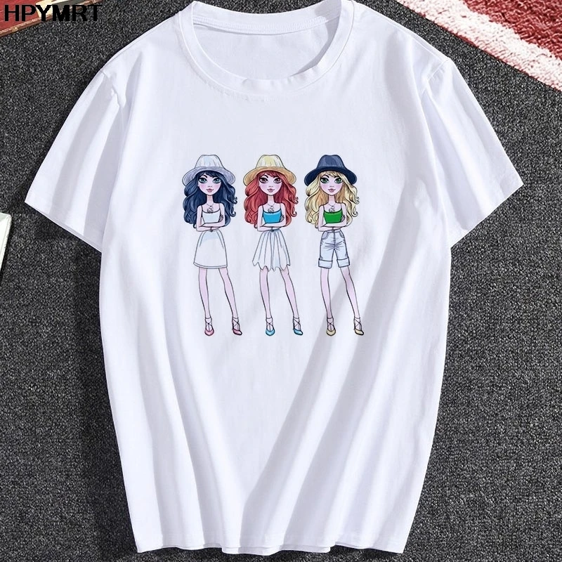 Футболка женская с мультяшным принтом, милая Дамская рубашка с граф...