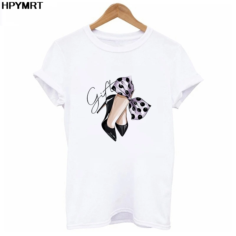 Летняя футболка на высоких каблуках, Повседневная белая футболка в ...