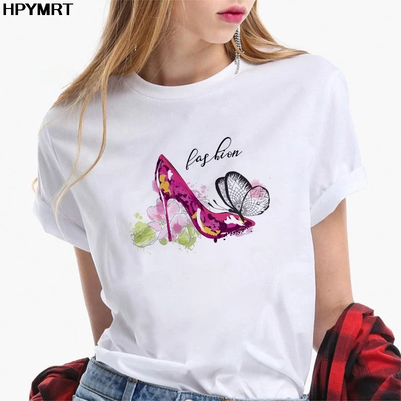 Белая футболка женская рубашка модная обувь на высоком каблуке Футб...