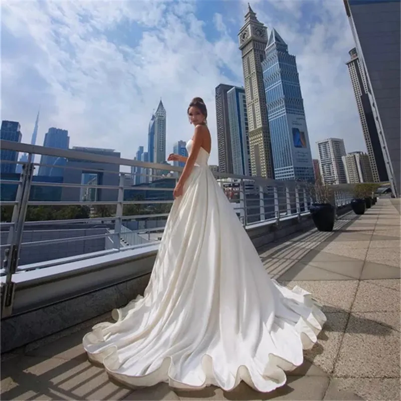 Атласное свадебное платье в стиле бохо, длинное платье для невесты