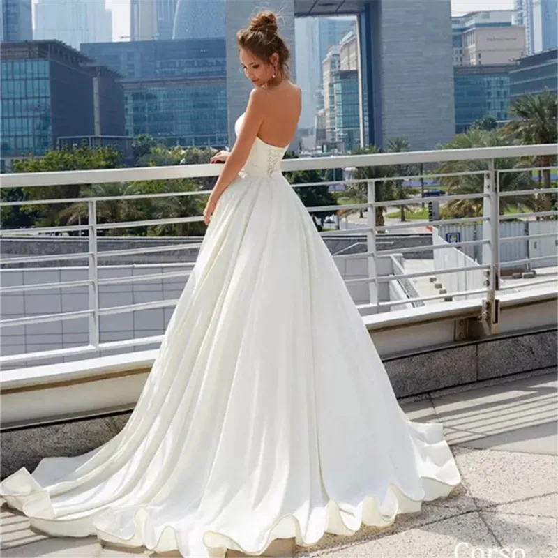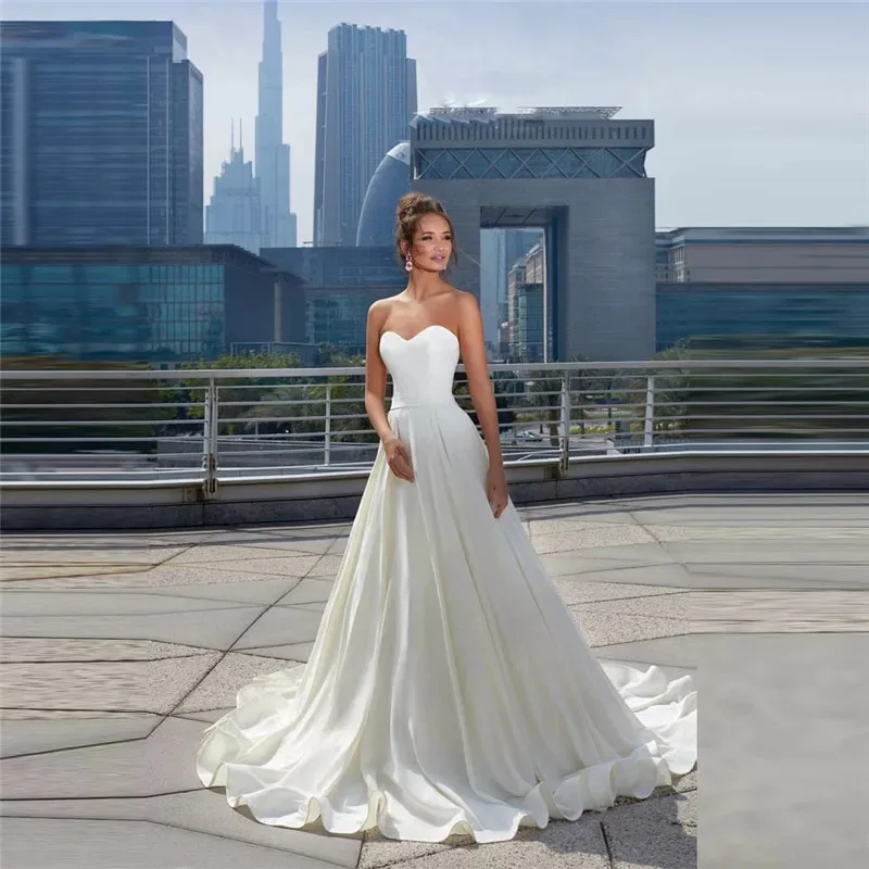 Женское атласное свадебное платье, простое кружевное длинное платье...
