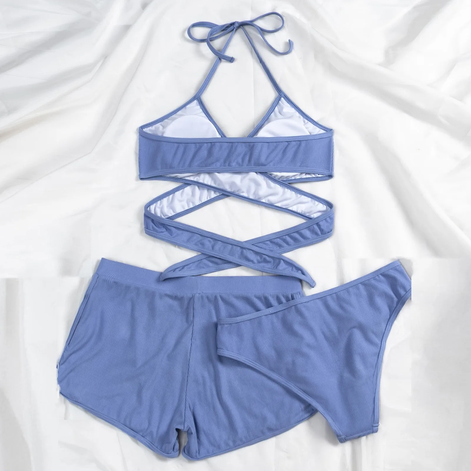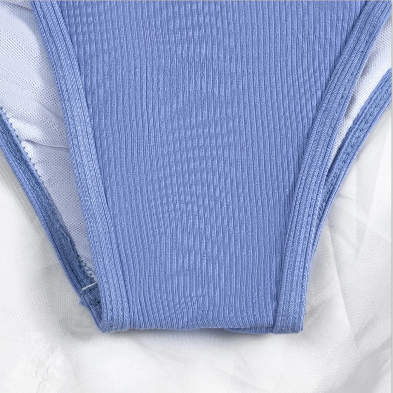 Женское сексуальное бикини 2021 с открытой спиной, синее однотонное...