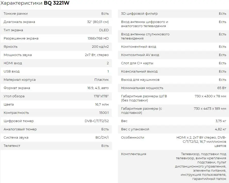 Размер экрана32"