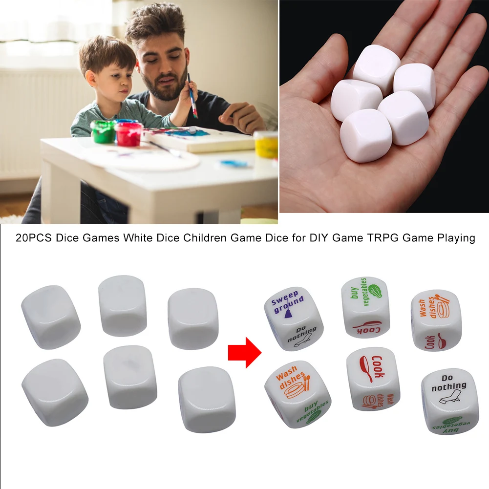 20 шт. 16 мм 20 мм Пустые кубики белый акриловый куб D6 настольная игра для детей DIY написать живопись граффити Семейные игры Забавные и обучающие кубики