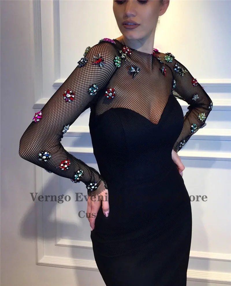 Женское вечервечерние платье Verngo, черное платье-футляр в пол с длинными рукавами и круглым вырезом, с цветными цветами, для выпускного вечера
