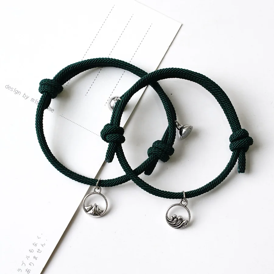 Морская волна Гора магнит пара Браслеты 2 шт.компл. Регулируемый вечерние туфли с плетеным ремешком магнит притягивает дружба простой, ювелирное изделие для пары