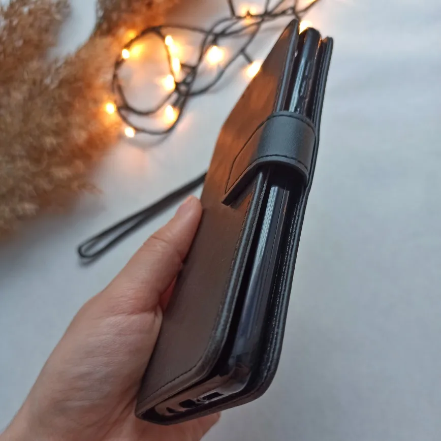 Чехол классный! Выполнен из качественных материалов. Основание, куда непосредственно вставляется телефон, из чёрного силикона. Все необходимые отверстия имеются. Есть отделения для карточек. Застёжка на магните. Доставка быстрая. Посылка отслеживалась. Рекомендую!