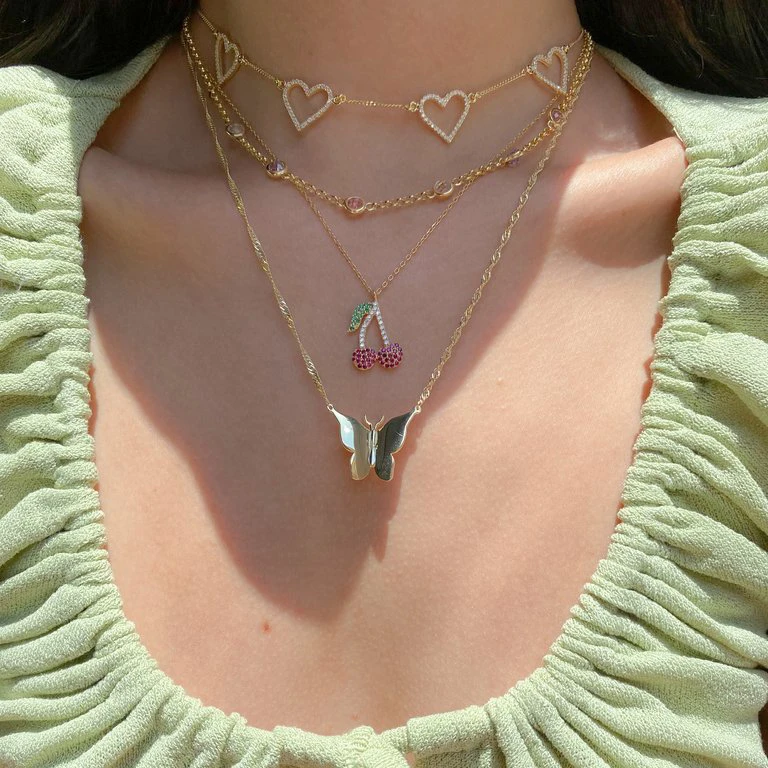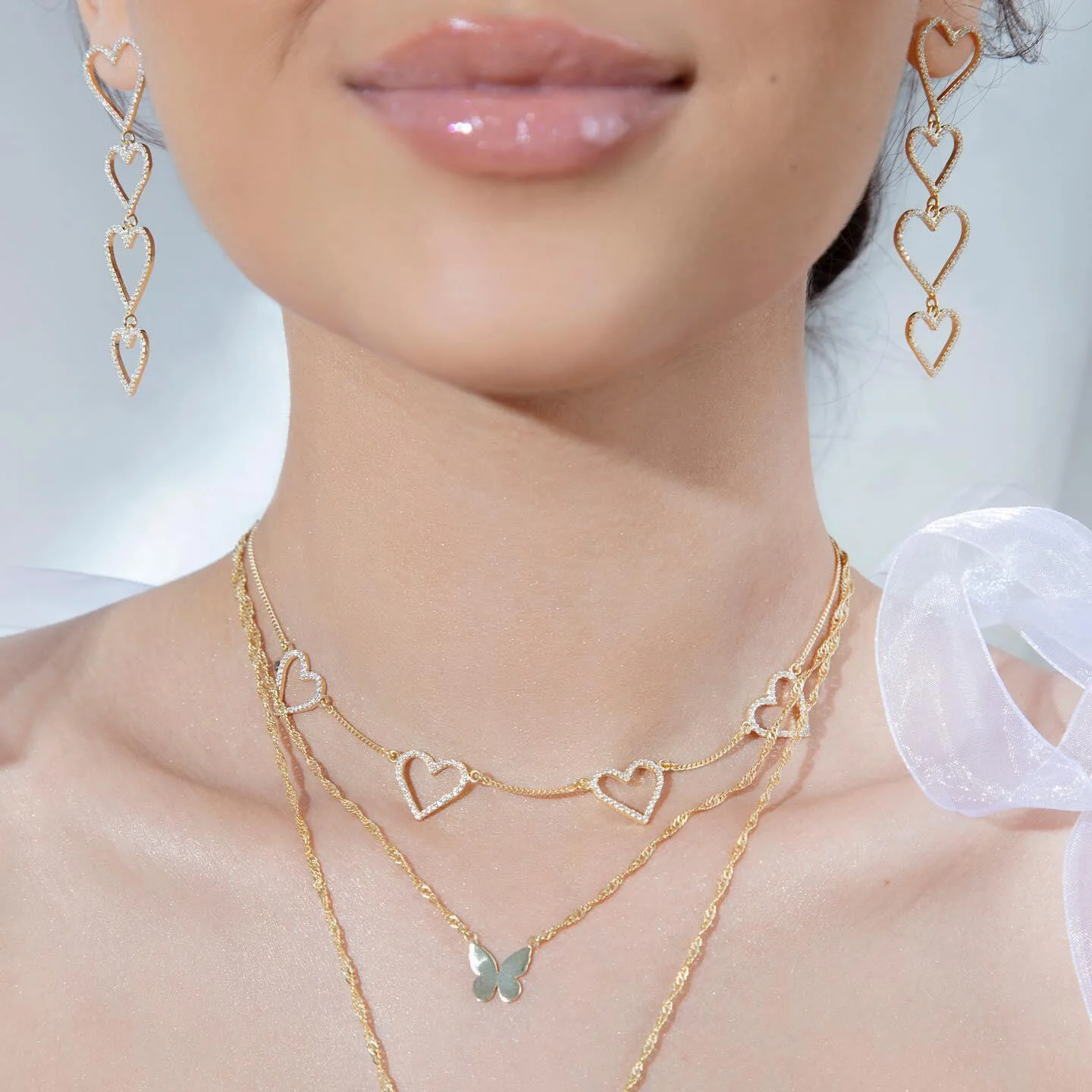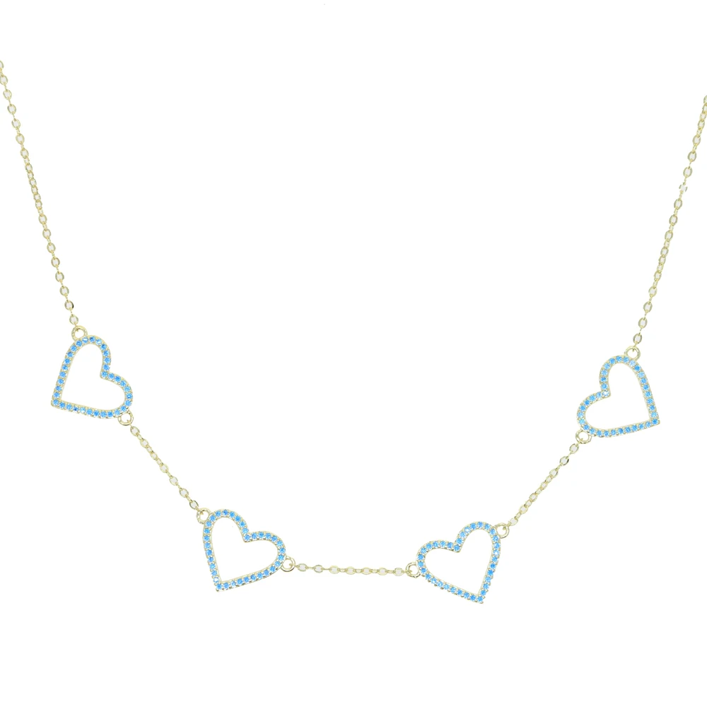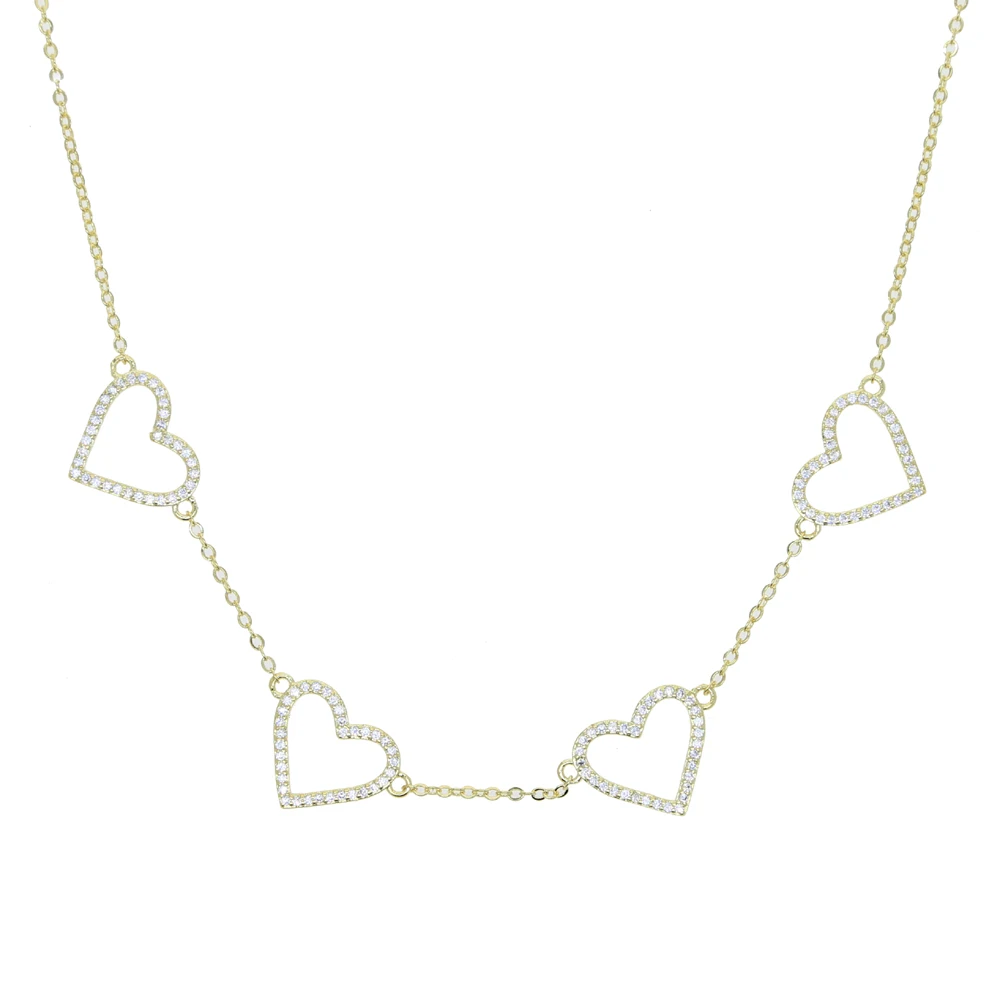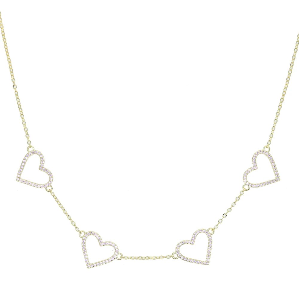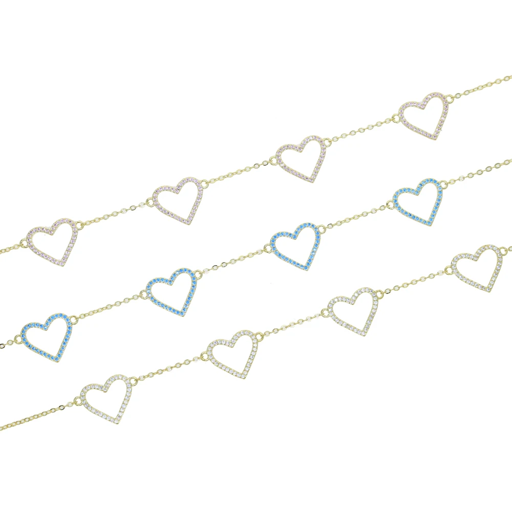 Европейский 4 шт. полый шарма сердца звено цепи колье-чокер; Цвета: розовый, голубой, белый CZ вымощенное золото Цвет 2021 мода подарок ко Дню Святого Валентина, ожерелье