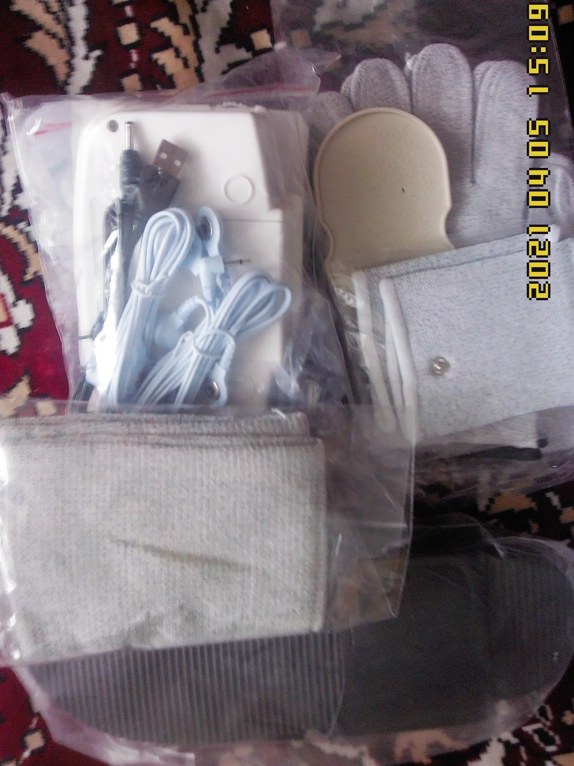 Товар прибыл очень быстро и соответствует описанию. Используются электроды, которые поставляются с гелем и очень практично применяются, все функции в порядке. Перчатки, чулки и другие аксессуары не используются, но в целом очень. Хорошо.