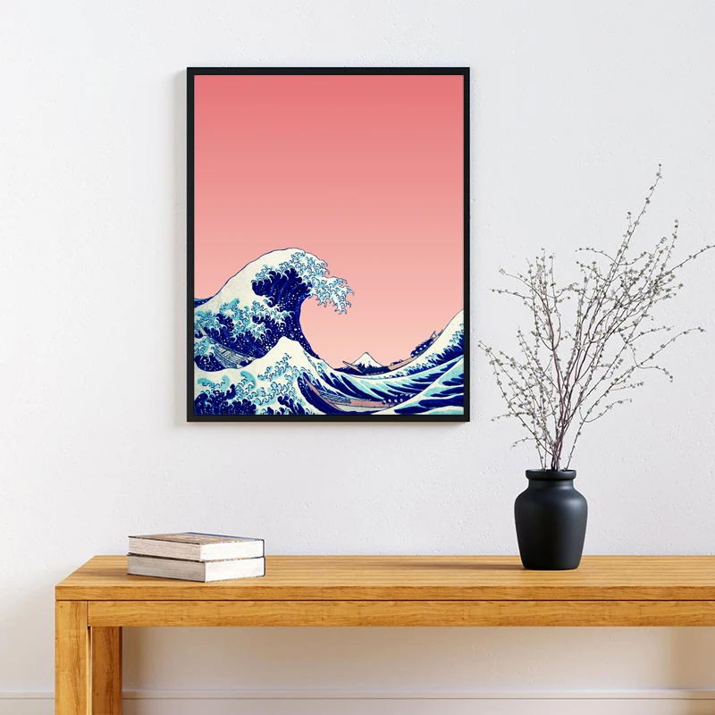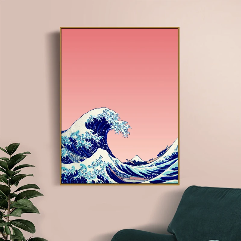 Большая волна Kanagawa Ukiyoe, японские художественные принты, розовая волна, фотография, известная картина, декор для гостиной