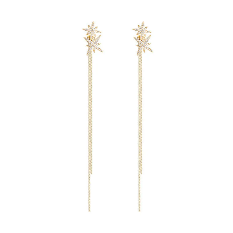 Женские длинные серьги-кисточки с фианитом, золотистые серьги-подве...