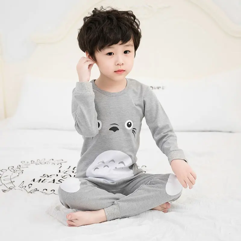 Весенняя детская пижама, пижама с длинным рукавом, Детская футболка + штаны, мультяшная Пижама Тоторо для девочек и мальчиков, детская одежда для сна, Ночная одежда