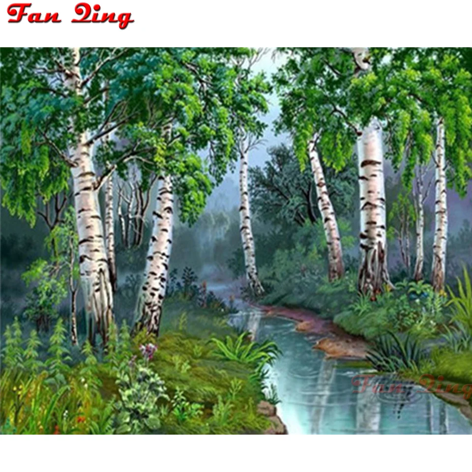 5D DIY Алмазная картина маленький поток березовый лес природные пейзажи полный квадрат/круглые стразы вышивка мозаика Вышивка крестом