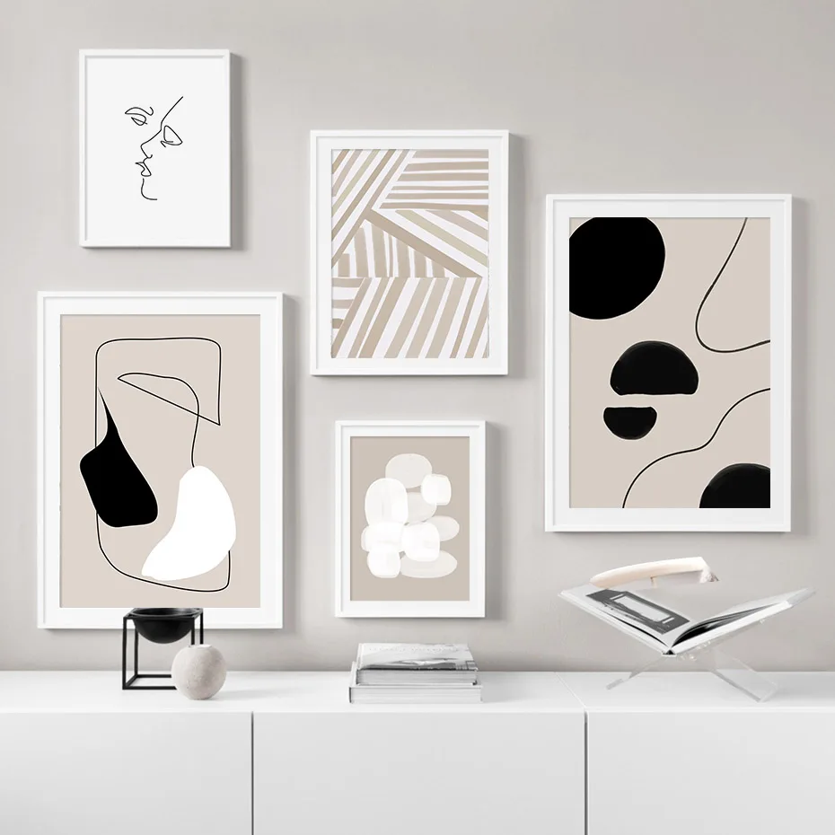 Модная Абстрактная Картина на холсте, линия, бежевые и черные принты, современный плакат, скандинавские настенные картины, украшение для гостиной и дома
