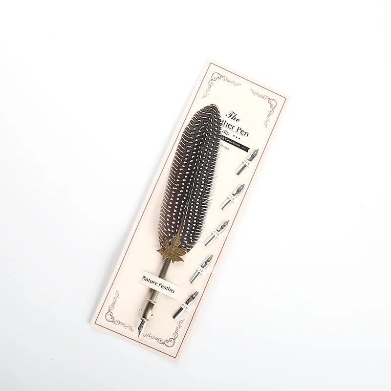 Новая креативная Ретро пера павлина перо для чернильницы волнистая круглый корпус авторучка комплект День учителя подарок ручка металлическая авторучка