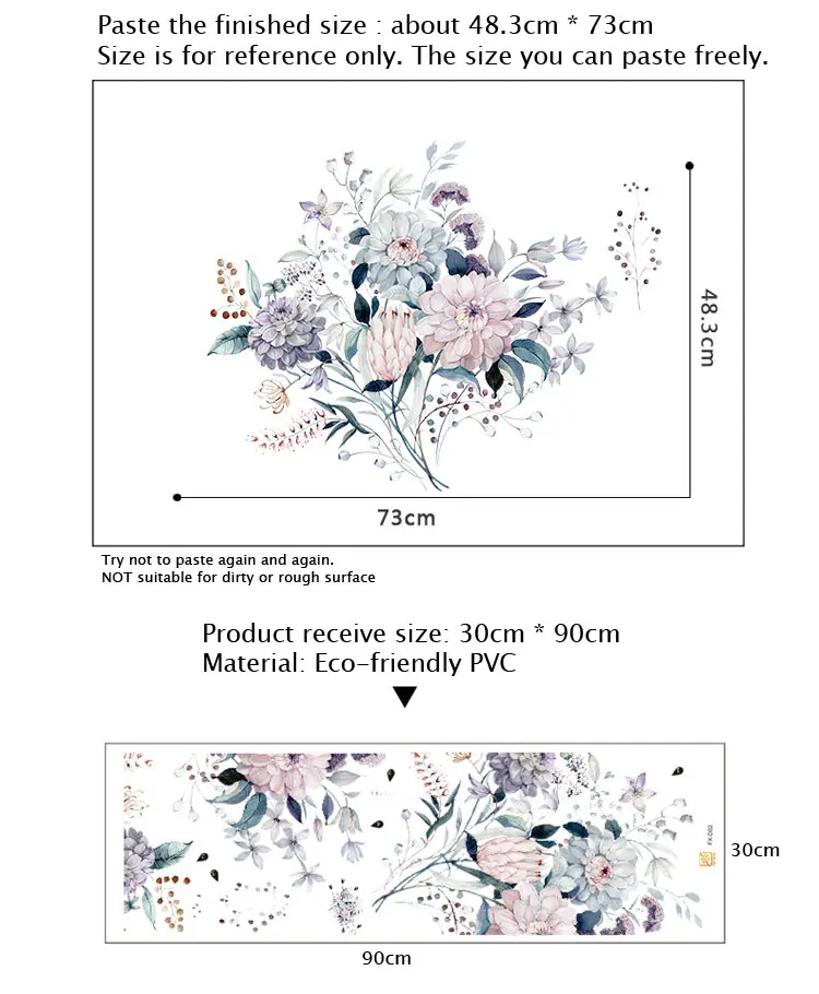 Романтические цветы стикер стены дома украшение стены гостиной спальни Декор литературный акварель Обои Съемные наклейки