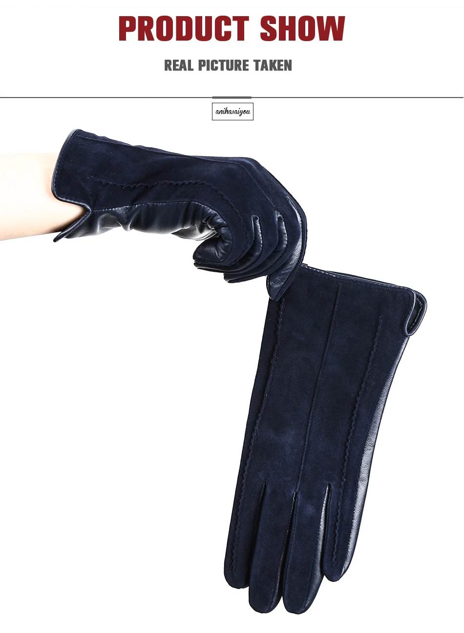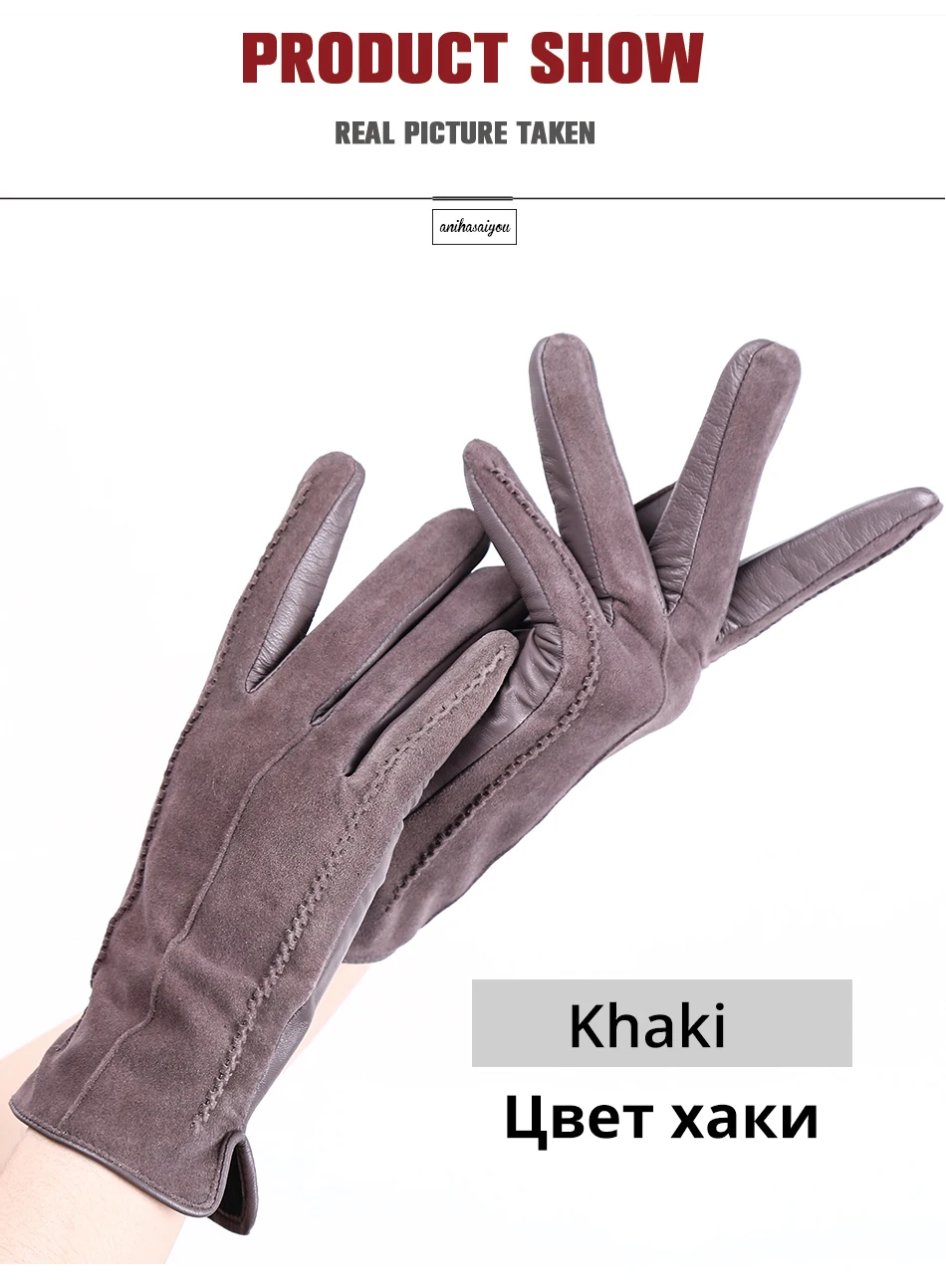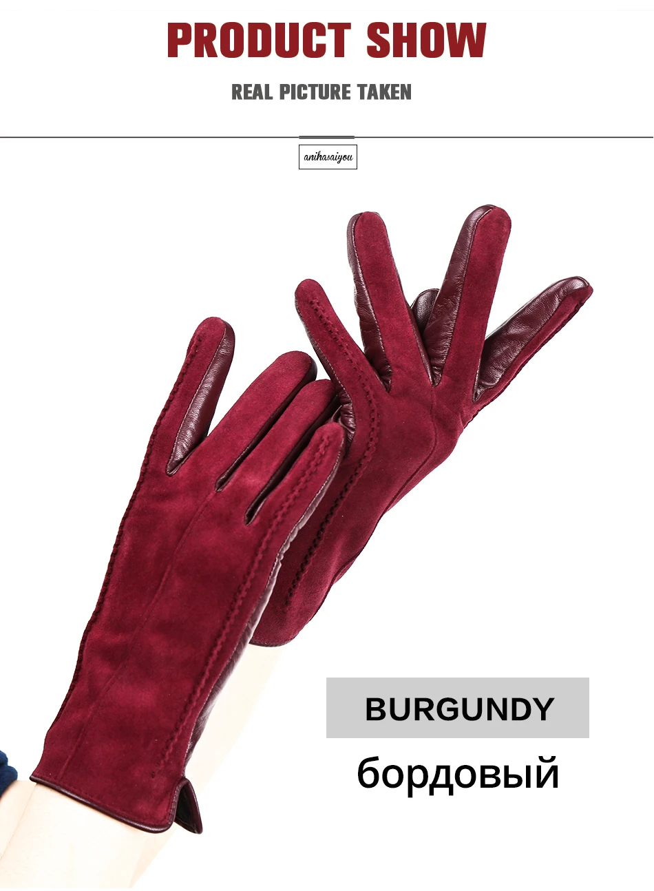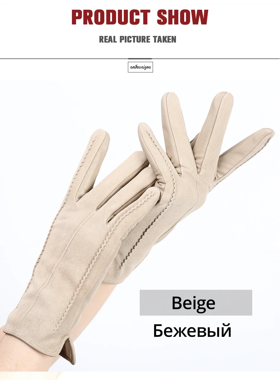 Перчатки женские зимние из 50% натуральной замши, цветные, 50%-2007