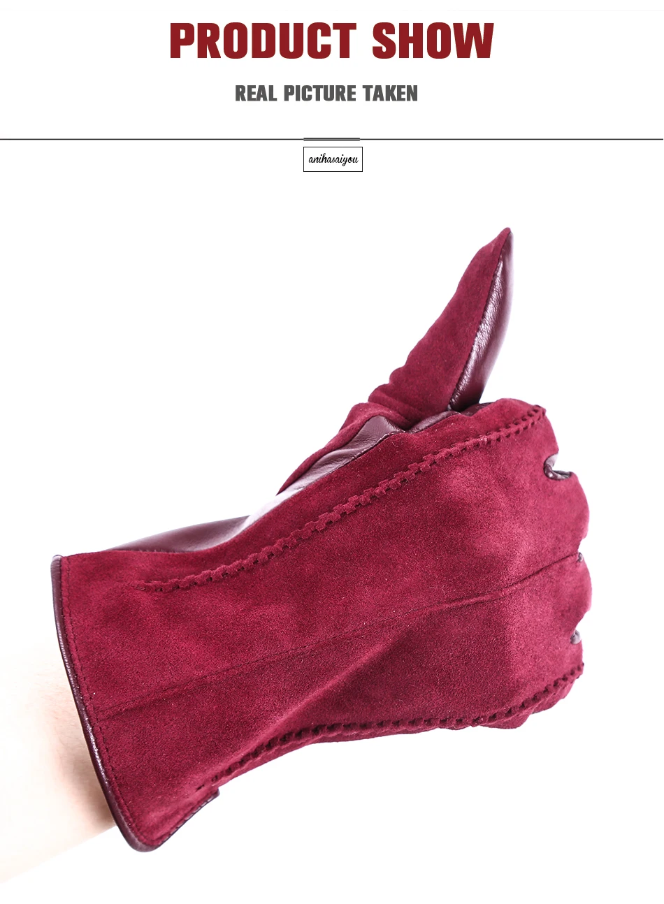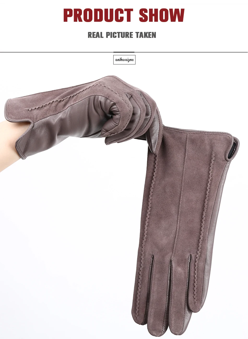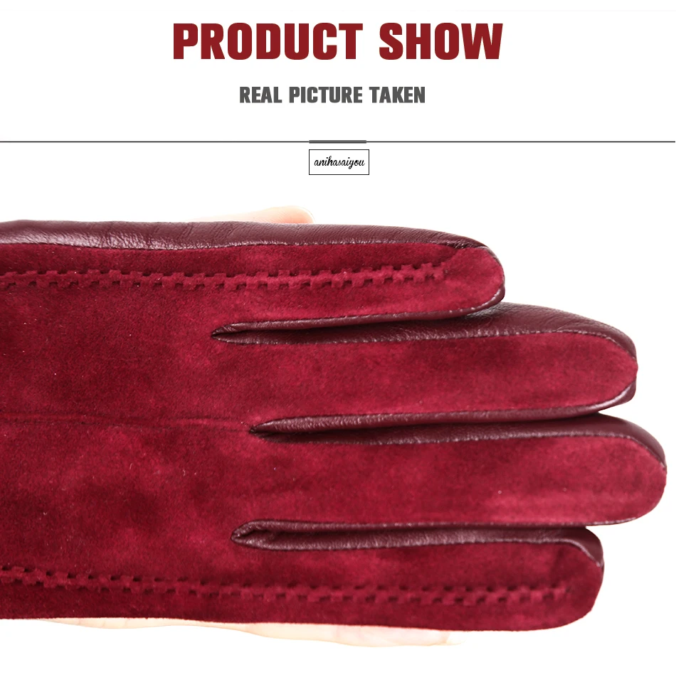 Перчатки женские зимние из 50% натуральной замши, цветные, 50%-2007