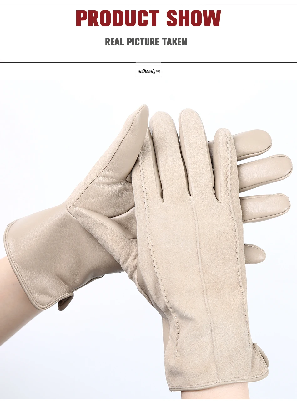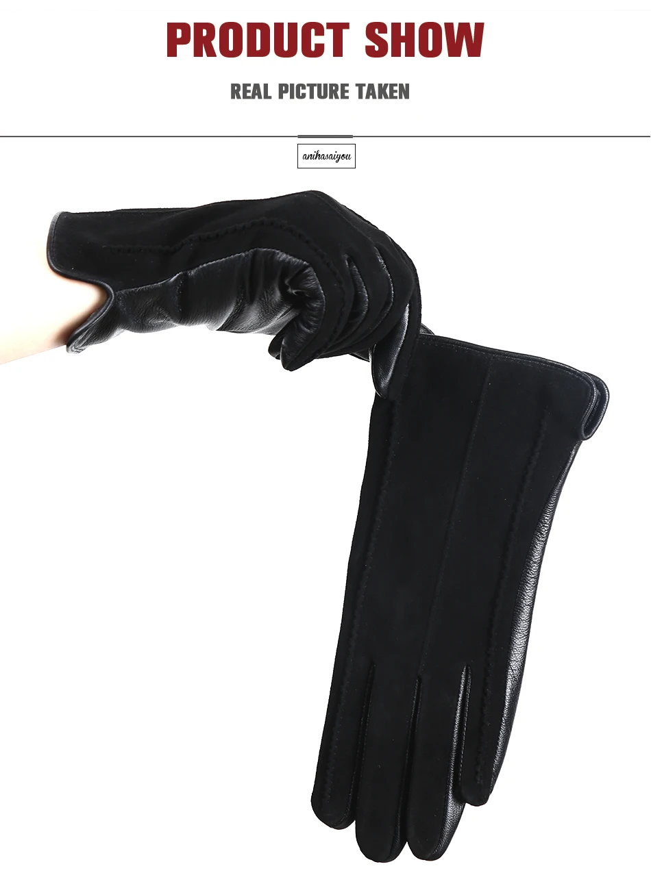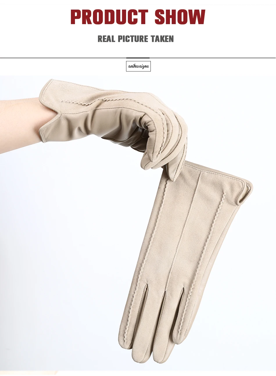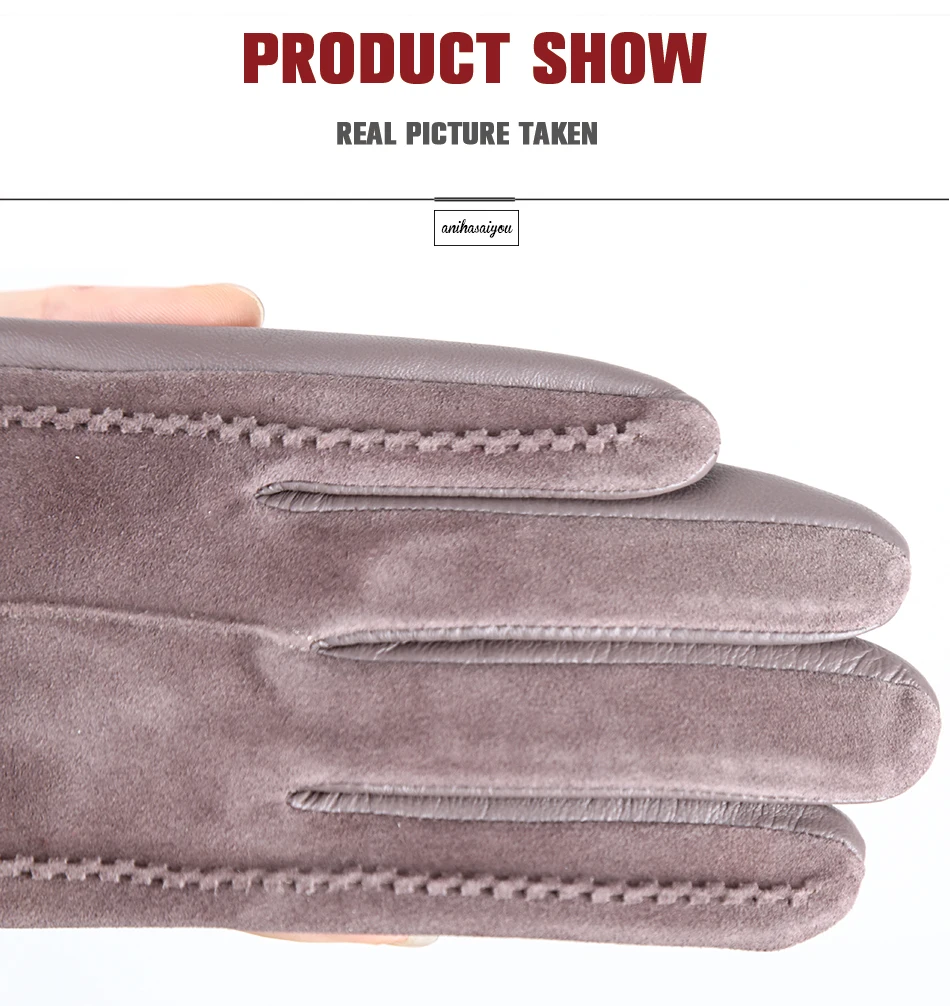 Перчатки женские зимние из 50% натуральной замши, цветные, 50%-2007