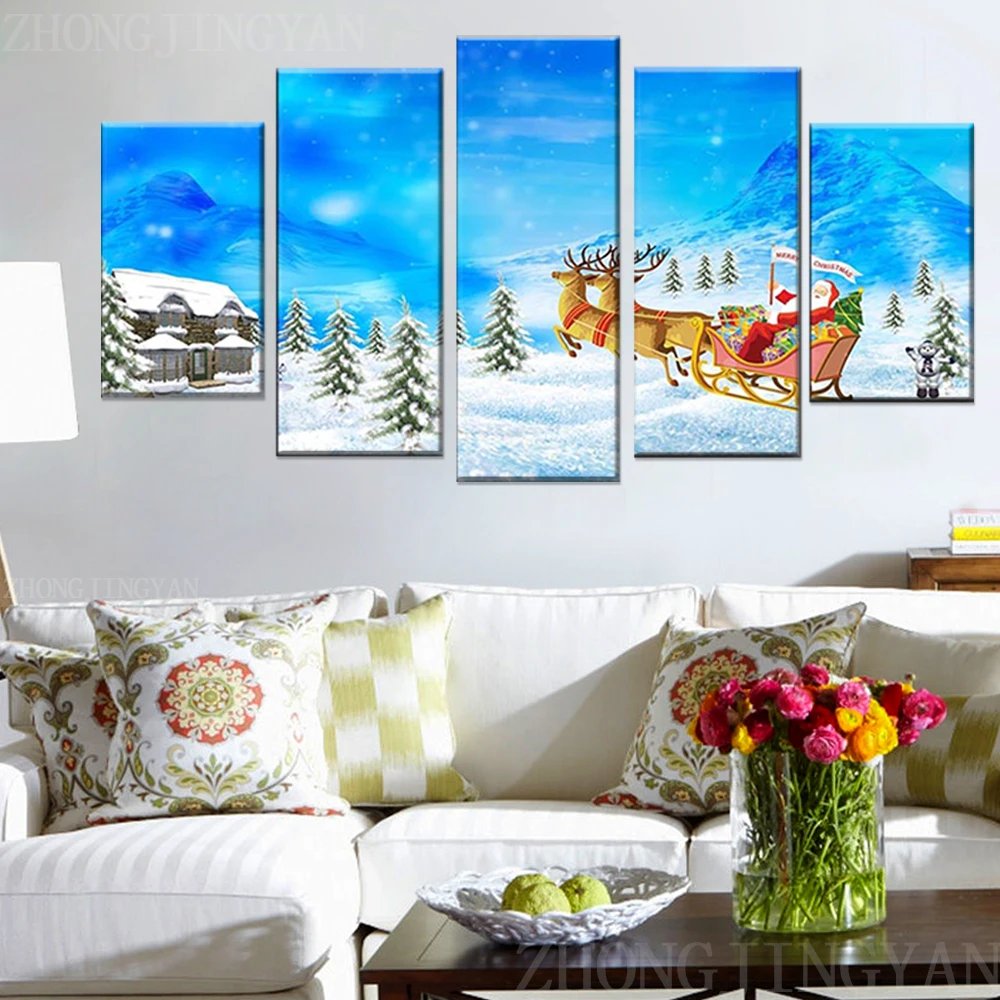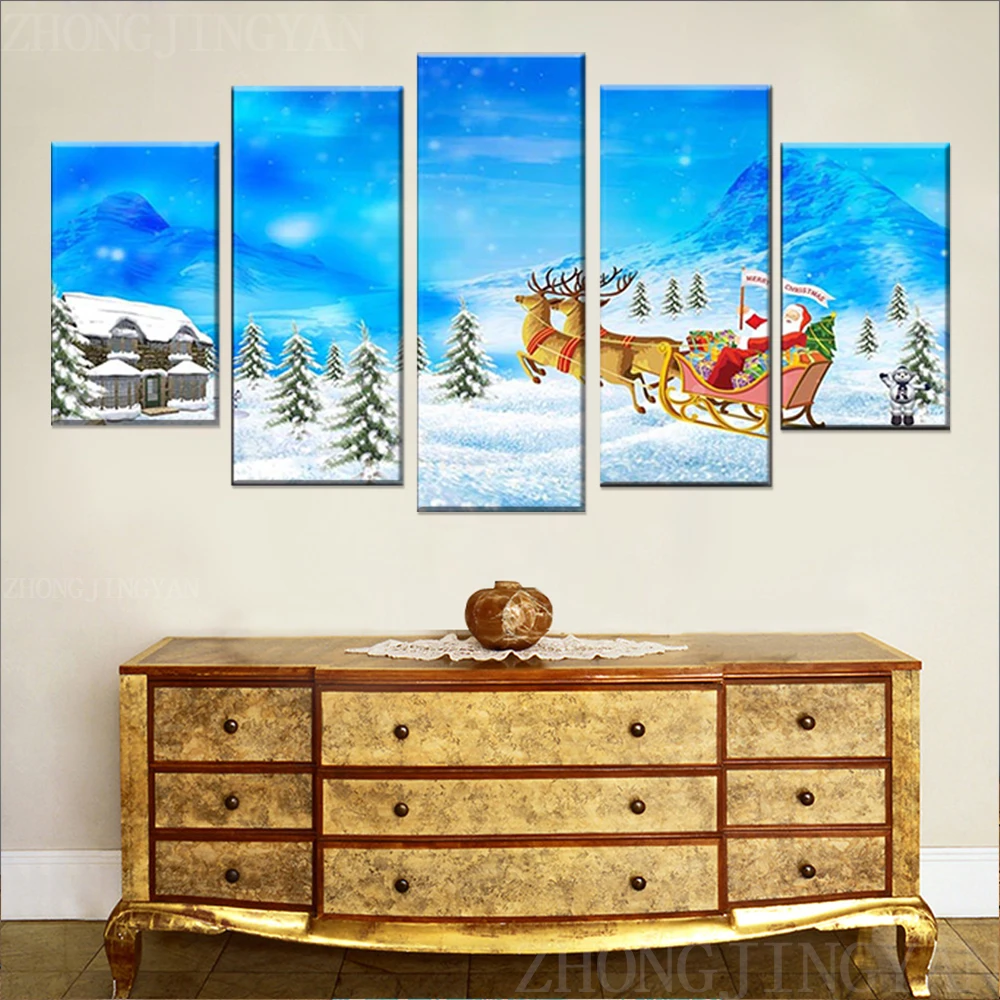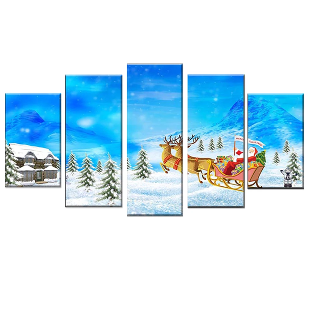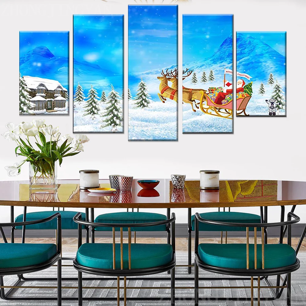 HD печатная Современная Картина на холсте для гостиной, 5 панелей, Рождественский пейзаж, Модульная картина, настенное искусство, домашний декор, плакаты, рамка