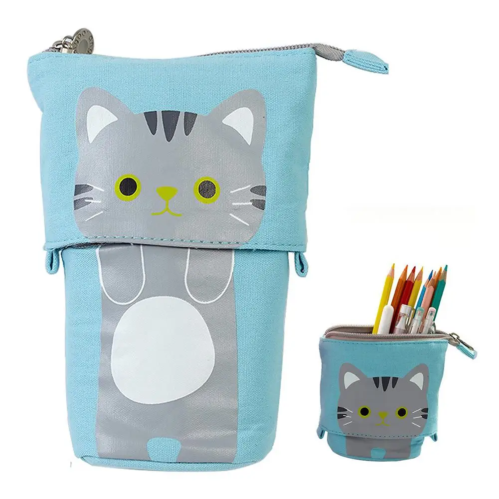 Чехол для карандашей, с мультяшным котом, выдвижной, на молнии, для дома и офиса, 2021