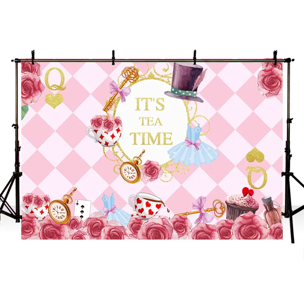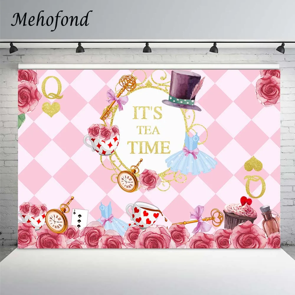 Mehofond Чай вечерние фотографии фонов принцесса платье для девочки на день рождения декор с изображением розовых цветов сетки фон для фотосъемки с изображением фотозонт Фотофон