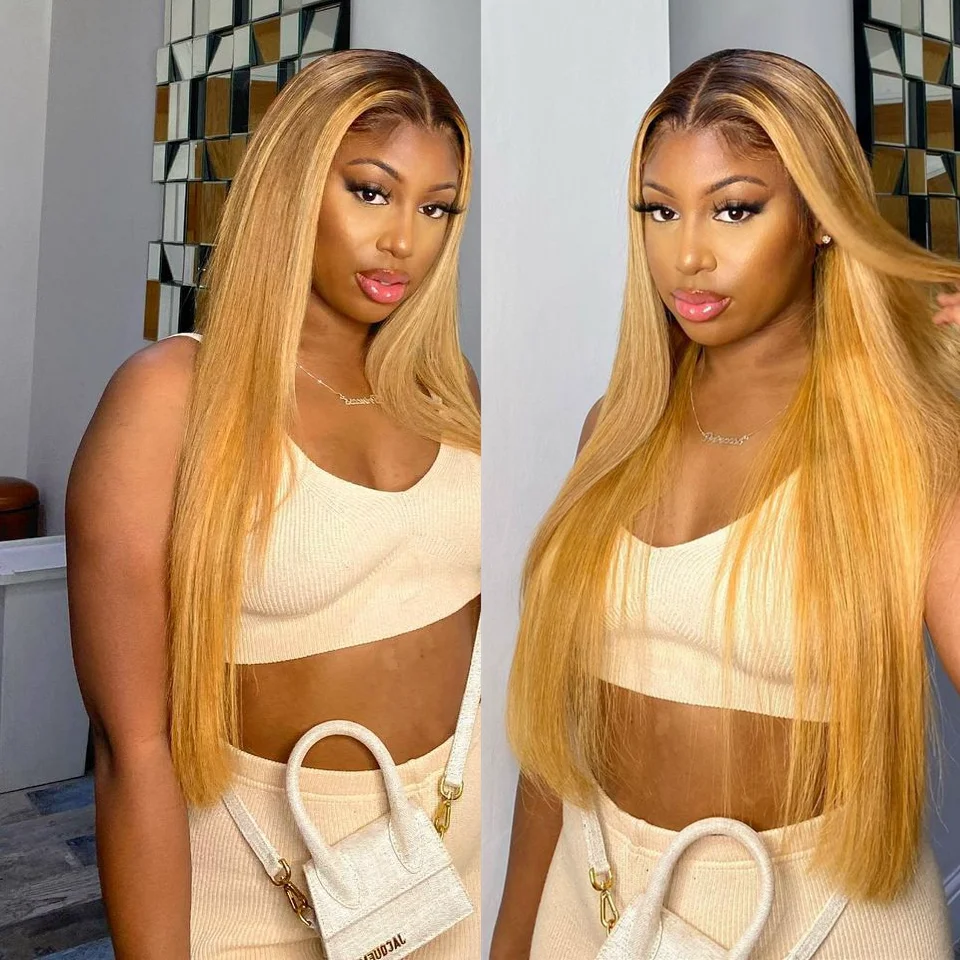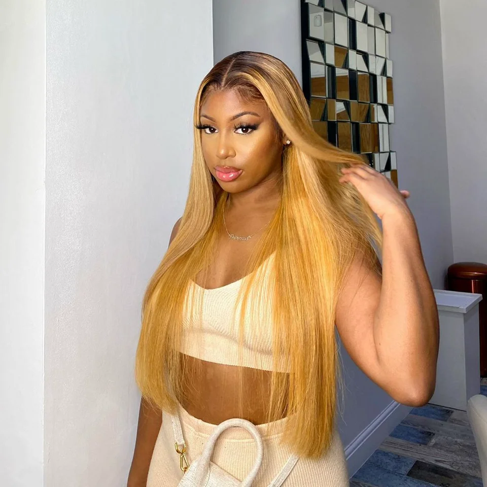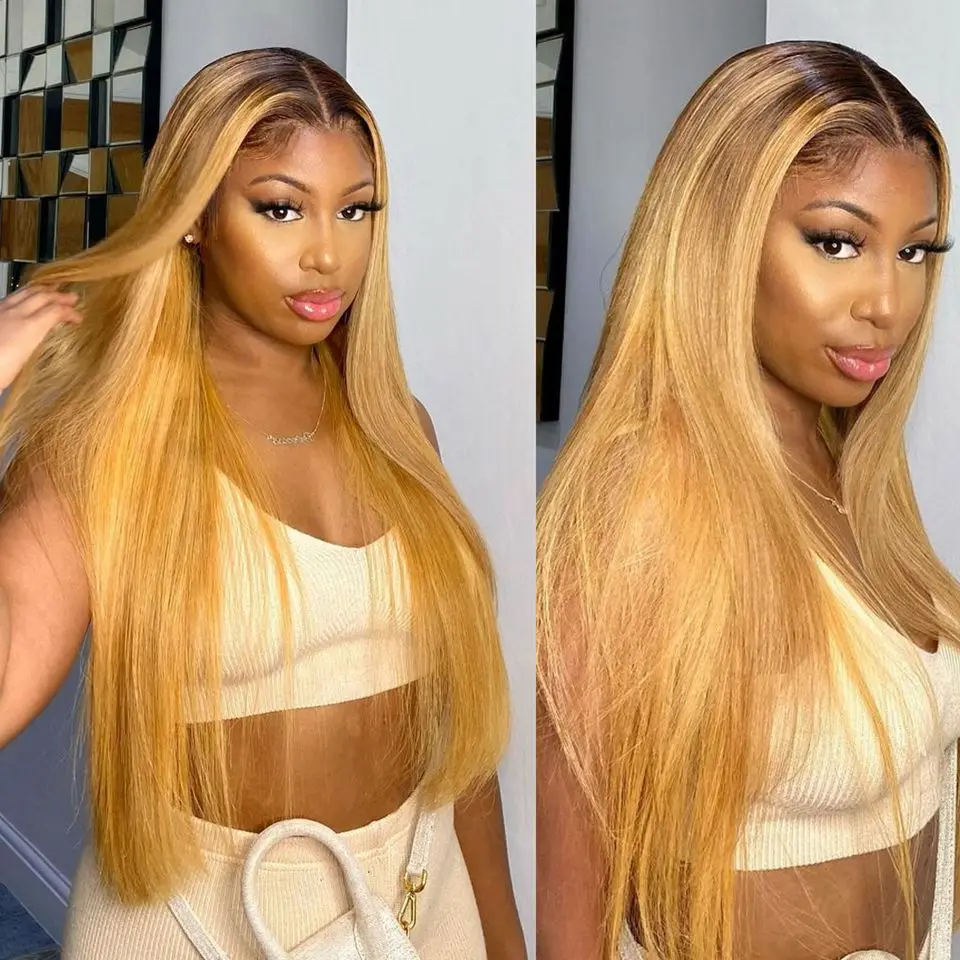 1b 27 Ombre Медово-Светлые кружевные передние парики прозрачные цветные длинные прямые человеческие волосы парик для черных женщин фронтальные предварительно выщипанные