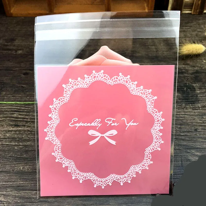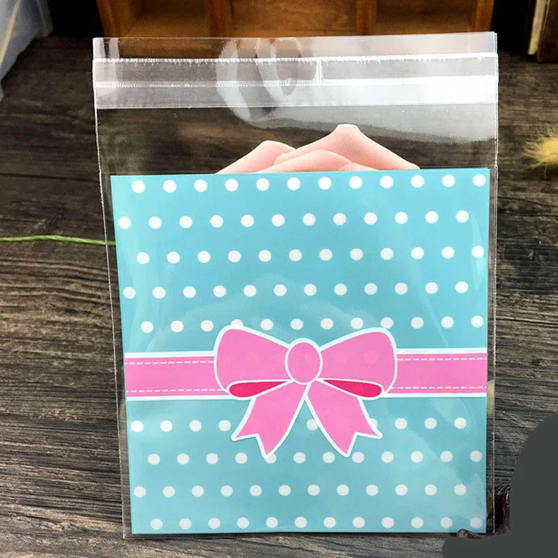 Самоклеящийся пластиковый пакет с прозрачным бантом для браслетов, сережек, подарочных пакетов сделай сам, 7 х7 см, 100 шт.