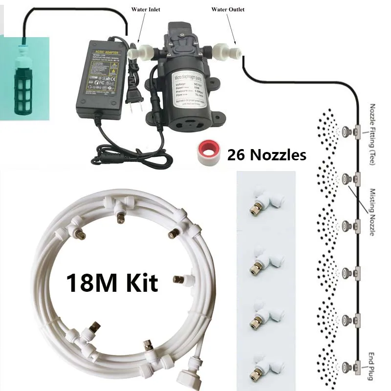 Система водяного охлаждения, хорошее качество, 6-18 м, 12 В, диафрагменный насос, наборы для полива, противотуманные сопла 6 мм, садовый распылитель