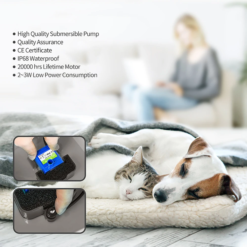 Quadruple deep filtration,Provide health and safety drinking water Promote pets to drink more water Protect the intestinal health of pets and reduce the risk of developing illness Prolong water pump life