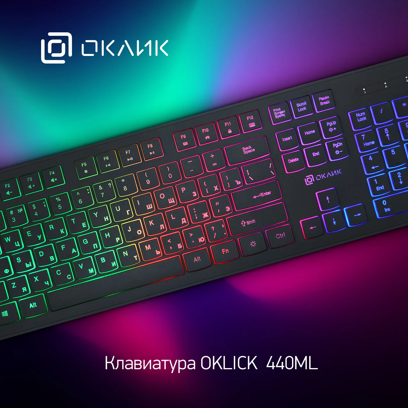 Клавиатура Oklick 440ML с подсветкой черный USB slim LED