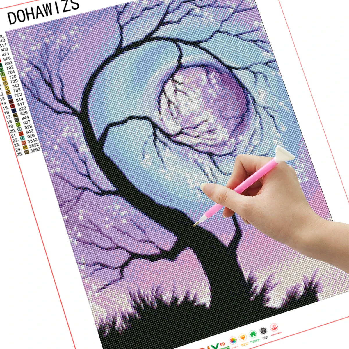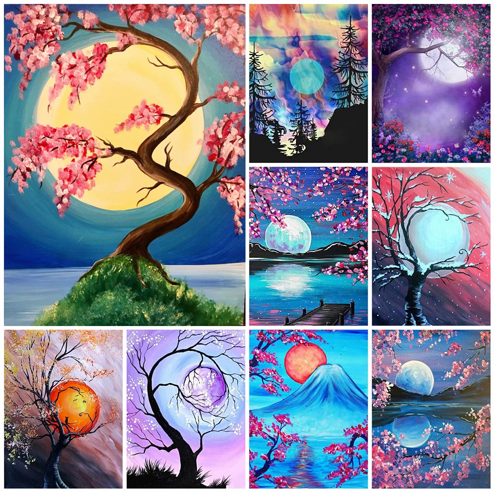 5D алмазов картина дерево Пейзаж Луна полная квадратная Алмазная вышивка крестиком Стразы мозаика, украшение для дома, подарок