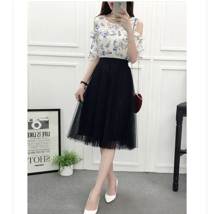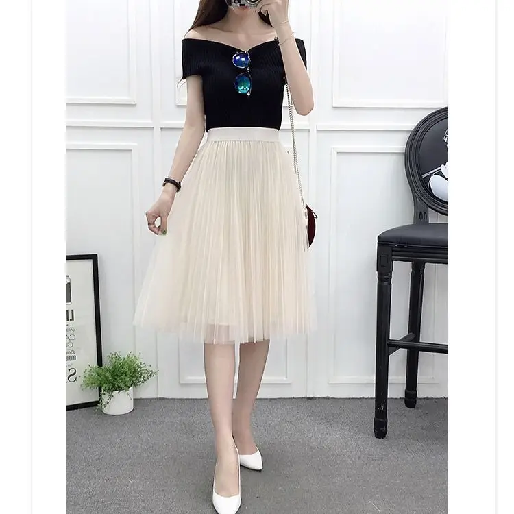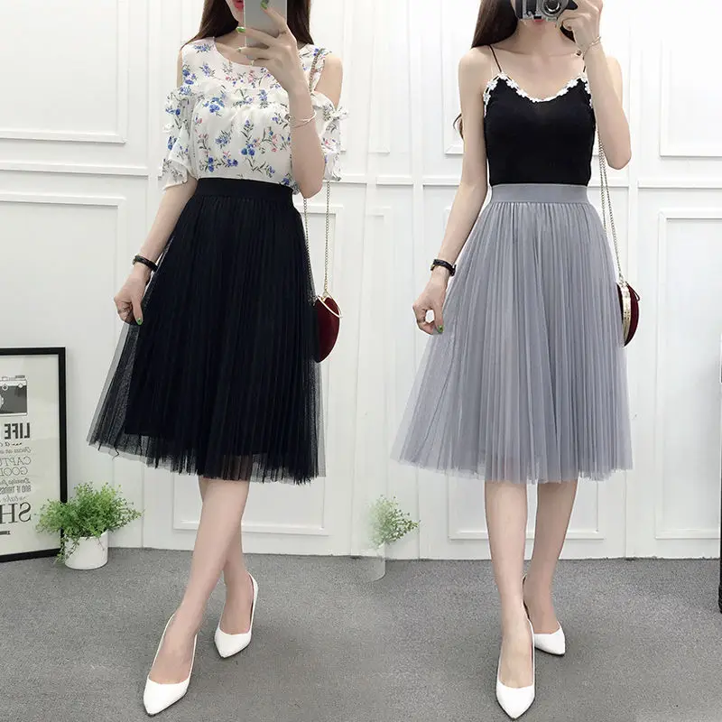 Сетчатая юбка в складку трапециевидная юбка с завышенной талией, фатиновая юбка, женские юбки