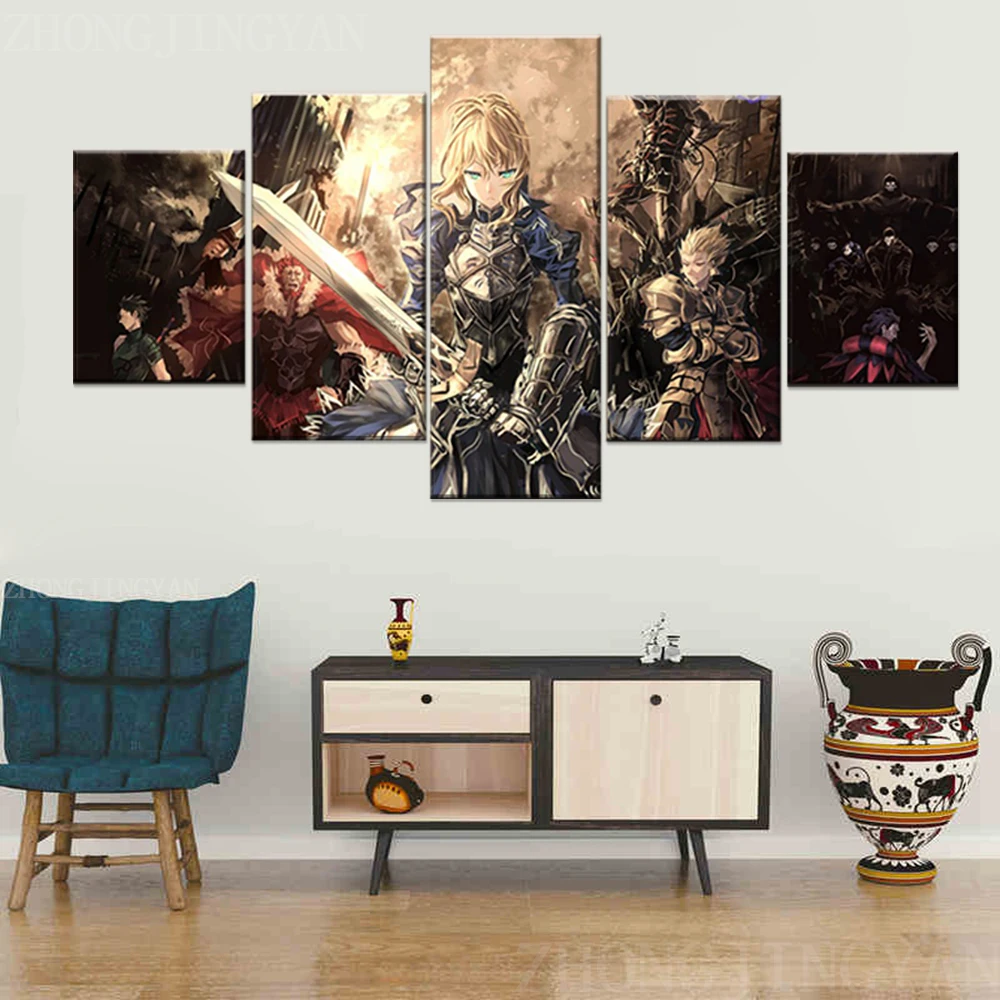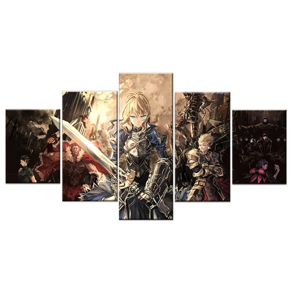 Картина на холсте 5 шт., настенное искусство аниме, Fate Stay Night, плакат, украшение для дома, картины, гостиная, модульная структура