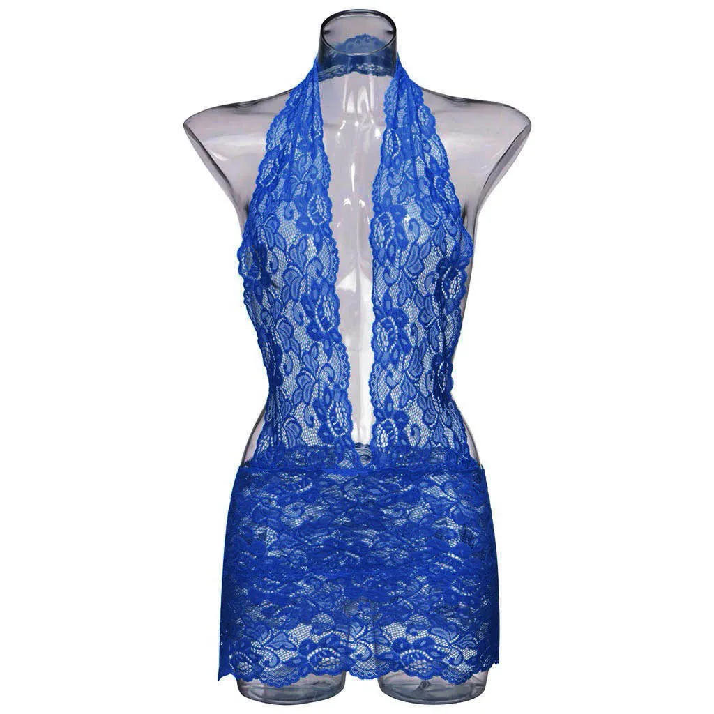 Новые женские кружевные Тэдди размера плюс модное повседневное нижнее белье, сексуальный глубокий v-образный вырез с лямкой на шее Цельный боди Сексуальная Ночная сорочка задерживаться платье