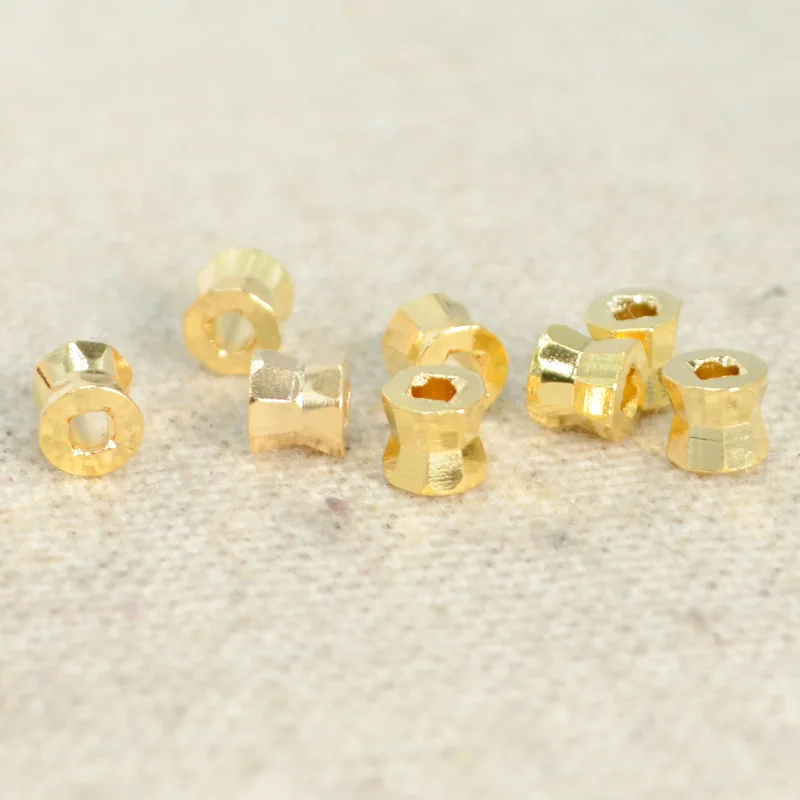 Металлические латунные позолоченные лазерные бусины-разделители 4*3,8 мм, 50 шт., бусины с отверстием 1,6 мм, детали для изготовления ювелирных изделий своими руками