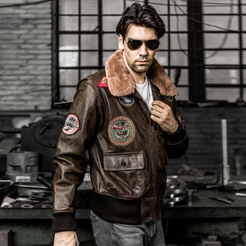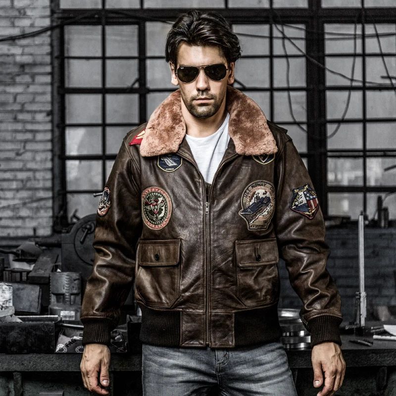 Бесплатная экспресс-доставка DHL Air Force G1 пилотная куртка теплый меховой воротник пальто высокого качества; Обувь из коровьей кожи куртки больших Размеры пальто