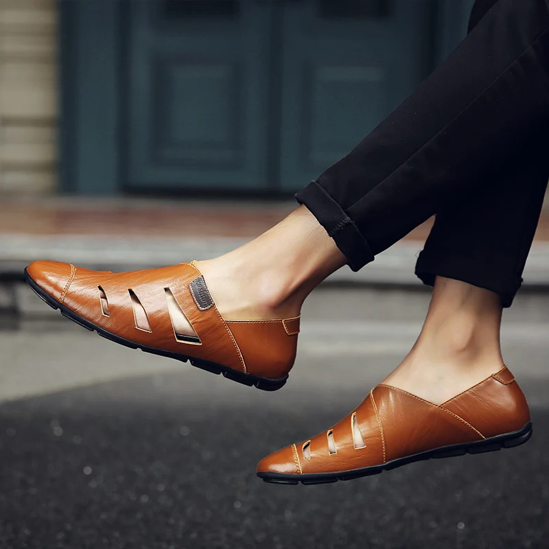 Сандалии мужские, из натуральной кожи, дышащие, с мягкой подошвой