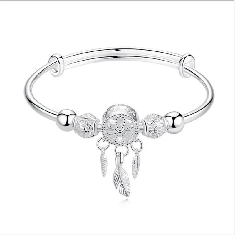 Женский серебряный браслет, регулируемый браслет, подвеска с полым шариком