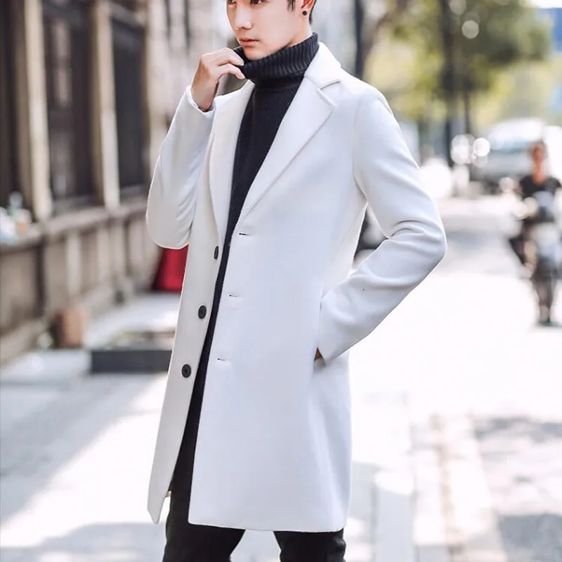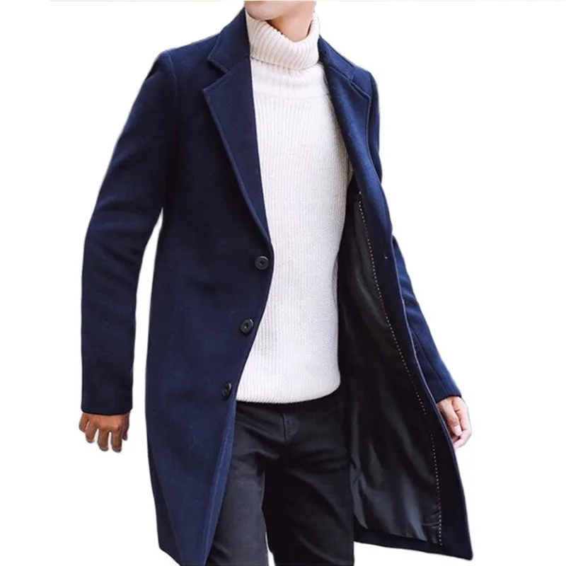 Мужское однобортное пальто, зимняя однотонная куртка-тренчкот из см...