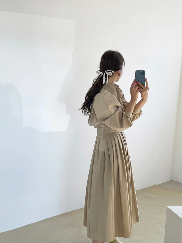 Женское Плиссированное Платье, Элегантное однобортное платье абрико...