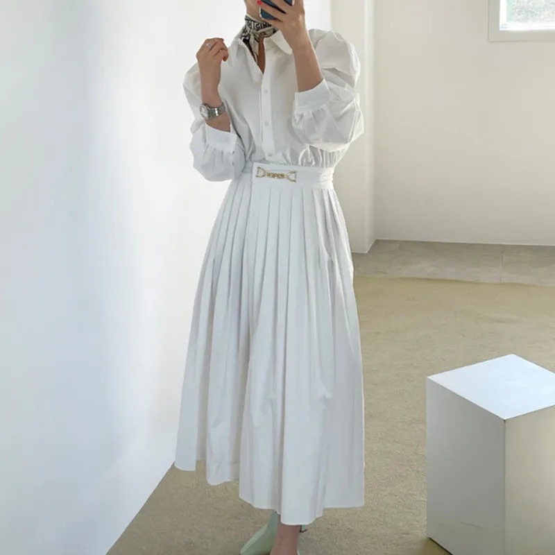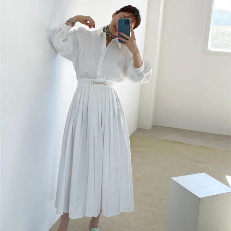 Новое черное платье для женщин, Осеннее однобортное белое однотонно...