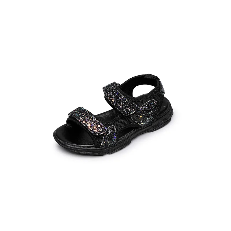 Сандалии E02166 для девочек с блестками, дышащие пляжные туфли с открытым носком, Мягкая сетчатая обувь на липучках для девочек, лето 2021