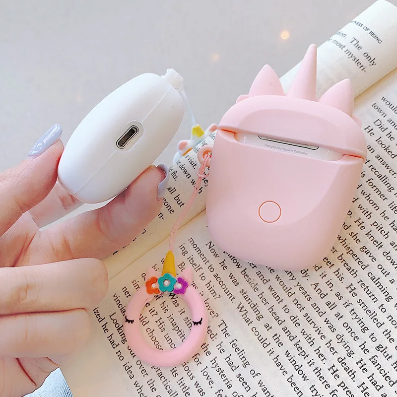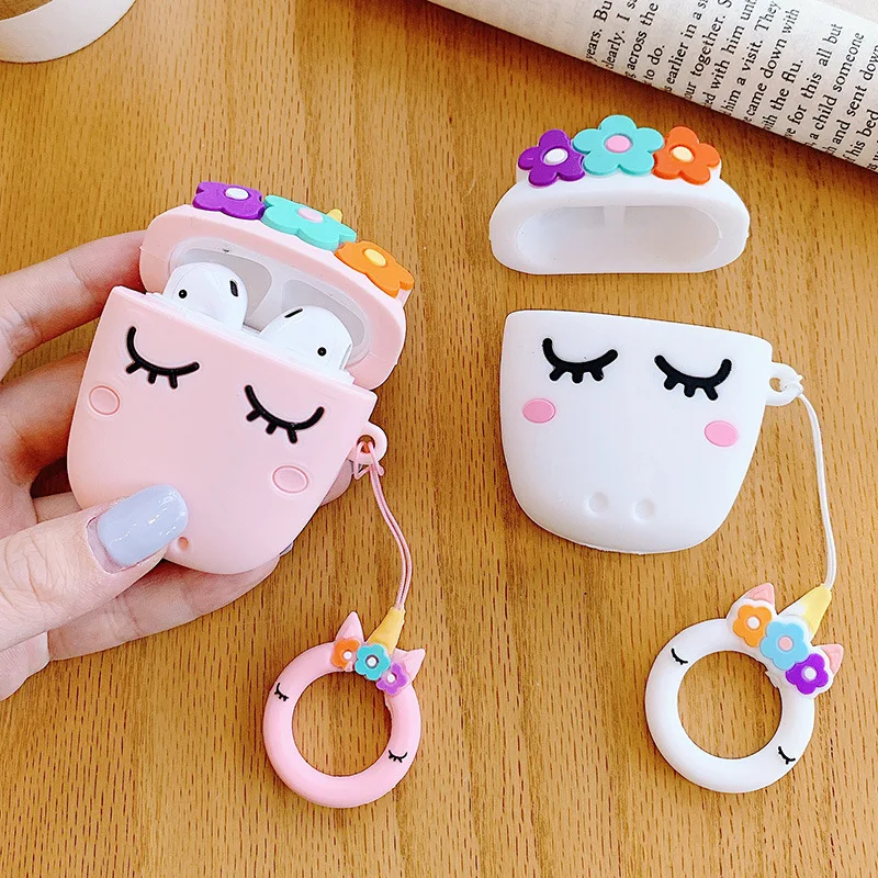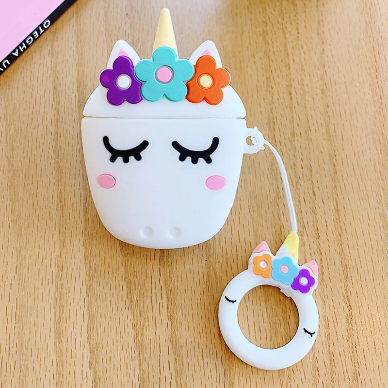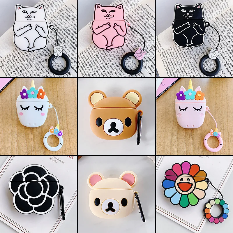 Силиконовый защитный чехол для наушников Apple Airpods 12 pro с объемными цветами, медведем, единорогом