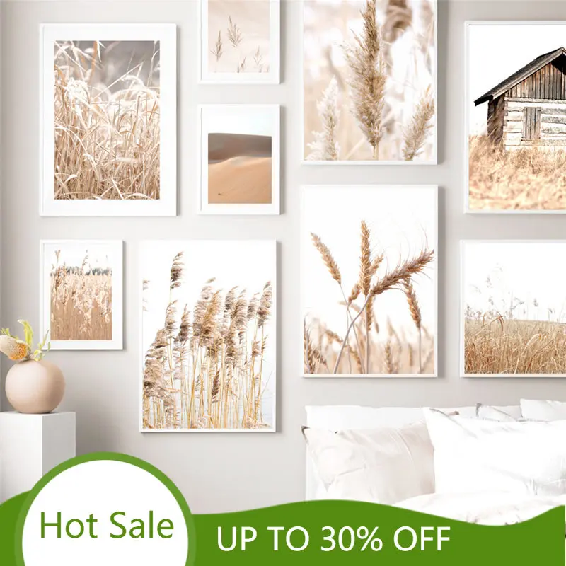 Винтажная Растительная живопись на холсте, плакат из натуральной пампасной травы, Современная бежевая Художественная печать, Настенная картина для гостиной, домашний декор