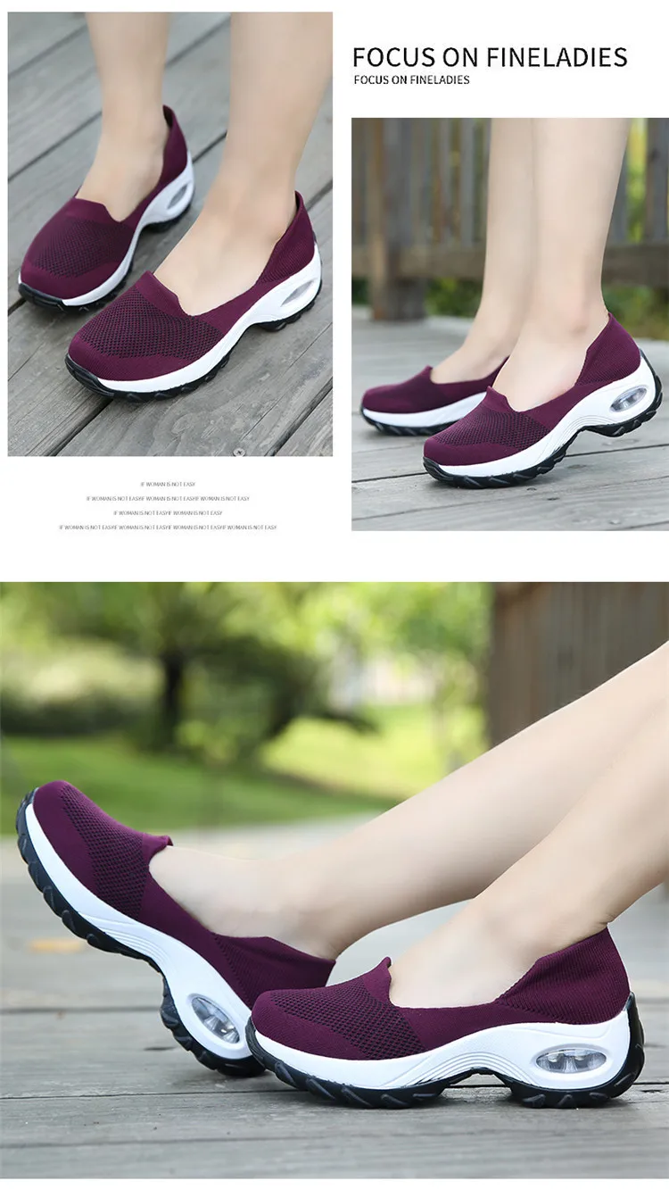Кроссовки женские на танкетке, легкие спортивные туфли, дышащая сетчатая повседневная обувь на плоской подошве, лоферы, обувь для кормления, лето
