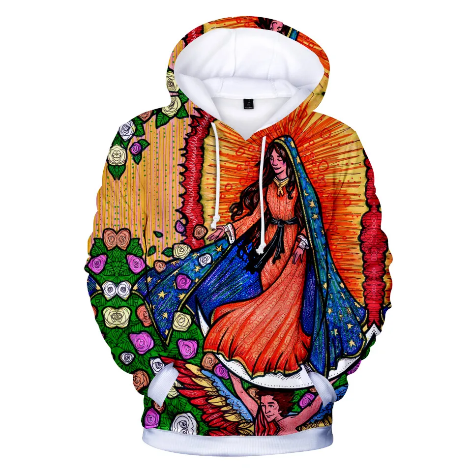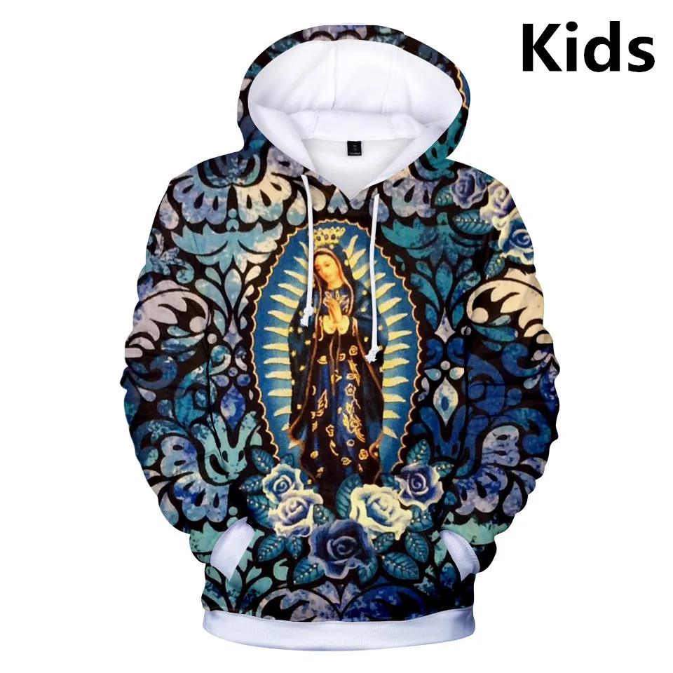 Модная новинка пуловер с капюшоном с изображением Богородицы Девы Марии мексиканской 3D толстовки с капюшоном с длинным рукавом для мальчиков и девочек детские пуловеры