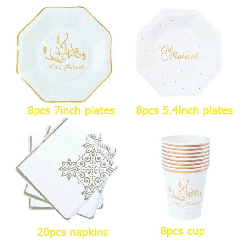 Одноразовая посуда ИД Мубарак, украшения на Рамадан тарелка, чашка для исламских мусульманвечерние, Рамадан, Карим, Ид Аль Адха, Декор для дома