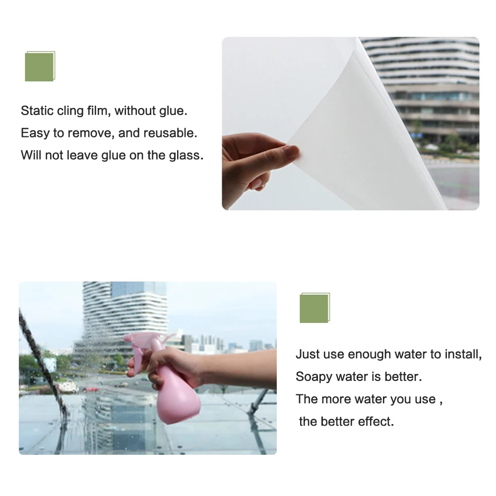 Эта пленка является статической пищевой пленкой, вы можете просто использовать достаточное количество воды для ее установки. (Мыльная вода лучше) чем больше воды вы используете, тем лучше эффект.