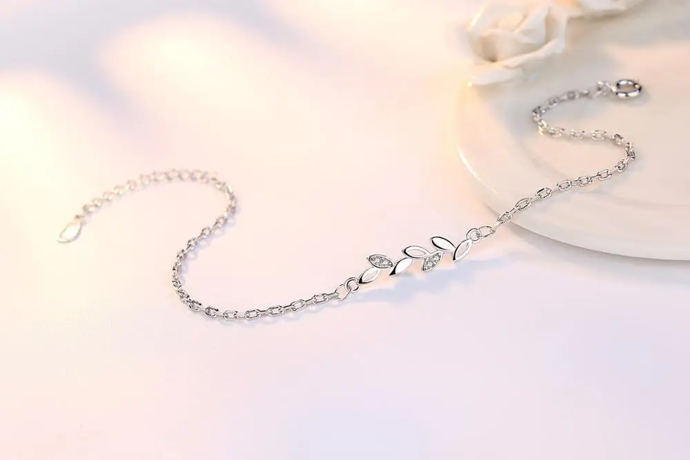 Браслеты женские из серебра 925 пробы с подвесками в виде листьев